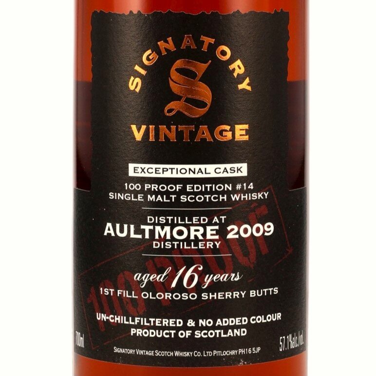 AULTMORE 2009 Single Malt Scotch Whisky (Signatory Vintage) / Exeptional Cask 100 Proof Edition #14 / 1st Fill Oloroso Sherry Butts / 16 y.o. 2009 - 2025 / 57,1 % Vol. / 0,7 l
