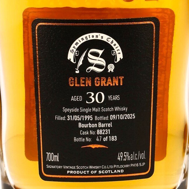 GLEN GRANT 30 SYMINGTON'S CHOICE Speyside Single Malt Scotch Whisky (Signatory Vintage) / Bourbon Barrel No. 88231 / 30 y.o. 1995 - 2025 / 49,5 % Vol. / 0,7 l / Geschenkbox