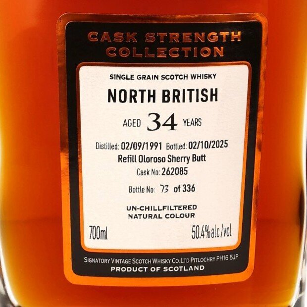 NORTH BRITISH 1991 Single Grain Scotch Whisky (Signatory Vintage) / Jahrgang 1991 - 2025 34 y.o. / Fassnummer 262085 / Refill Oloroso Sherry Butt / 50,4 % Vol. / 0,7 l / Geschenkbox