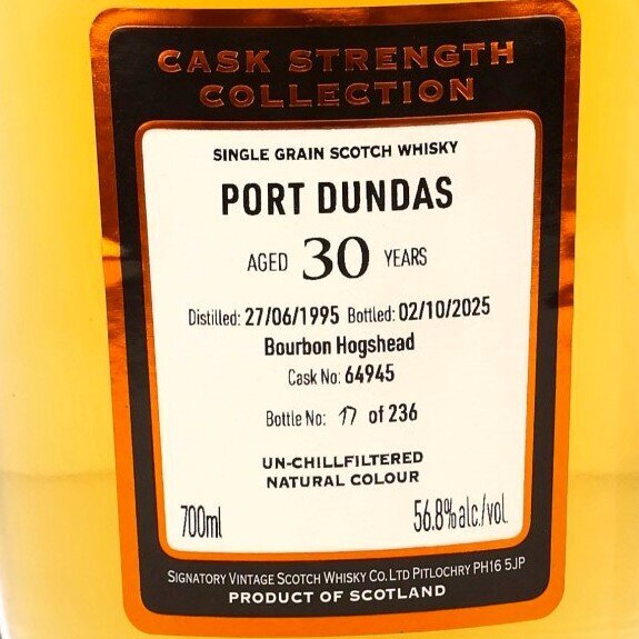 PORT DUNDAS 30 Single Grain Scotch Whisky (Signatory Vintage) / 1995 - 2025 30 y.o. / Bourbon Hogshead 64945 / 56,8 % Vol. / 0,7 l / Geschenkbox