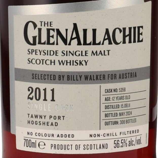 THE GLENALLACHIE 2011 Speyside Single Malt Scotch Whisky / Selected by Billy Walker for Austria / Single Cask Tawny Port Hogshead No. 5358 / 2011 - 2024 12 y.o. / 56,5 % Vol. / 0,7 l / Geschenkbox