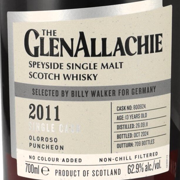 THE GLENALLACHIE 2011 Speyside Single Malt Scotch Whisky / Single Cask Oloroso Puncheon No. 800924 / 2011 - 2024 13 y.o. / 62,9 % Vol. / 0,7 l / Geschenkbox