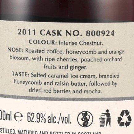 Das Single Cask The GlenAllachie 2011/2024 – Oloroso Puncheon zeigt die unabhängige Speyside-Brennerei von ihrer maximal individuellen Seite. Nach 13 Jahren in einem einzelnen Oloroso Sherry Puncheon überzieht der fassstarke Single Malt anspruchsvolle Gaumen mit komplexen Noten von cremigem Salzkaramelleis, eingelegter Honigwabe und Rosinenbutter, gefolgt von getrockneten roten Beeren und Mokka.